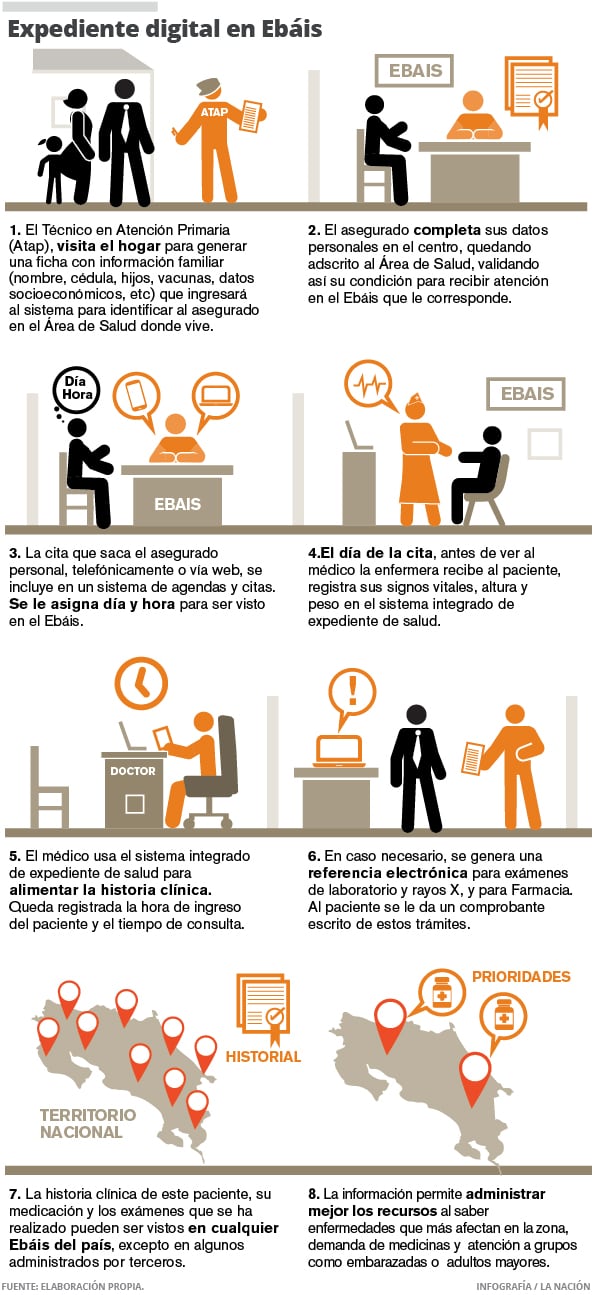 Si Manuel Amador, de Curridabat, en San José, va a un Ebáis de Chacarita, en Puntarenas, el médico puede consultar su historial de enfermedades, su uso de medicamentos o los exámenes de laboratorio y radiología que le han hecho.