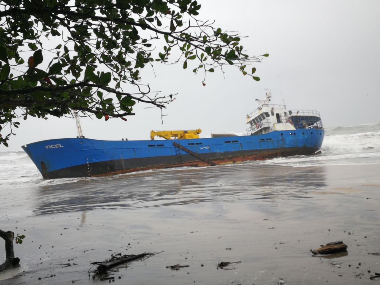 La nave Yicel, de 60 metros de largo, construida en 1961 (hace 56 años) y con 211 toneladas de peso bruto, encalló desde la tarde del viernes 8 de diciembre. Ese día, se dio una entrada de agua por una fisura en el casco lo cual inundó la sala de motores y provocó la falla de las bombas de extracción. Antes de un hundimiento, el capitán decidió conducir el barco hasta la playa.