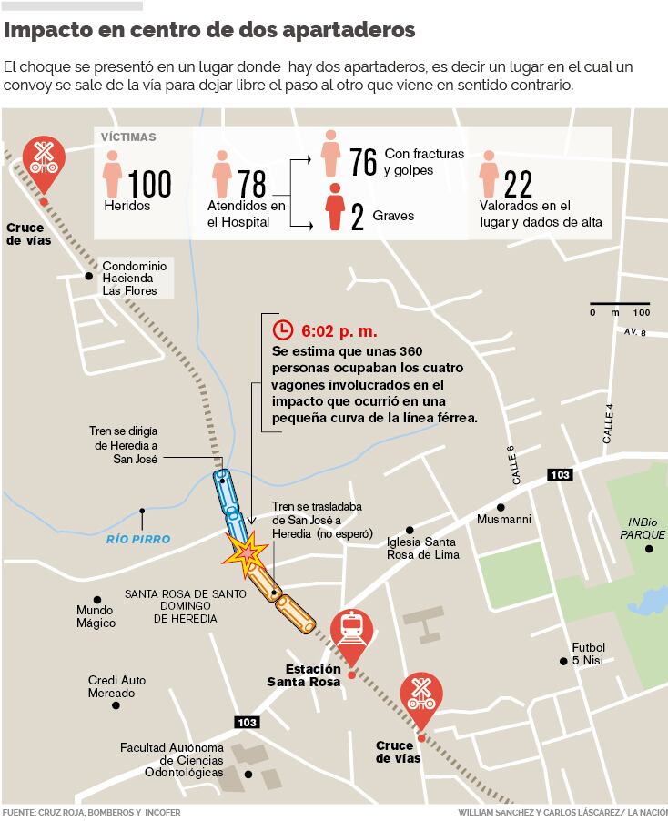 Un grave olvido del maquinista del tren que viajaba de San José hacia Heredia habría sido la causa del choque que ocurrió el lunes a las 6:02 p. m. en Santa Rosa de Santo Domingo de Heredia, que dejó 100 personas heridas.