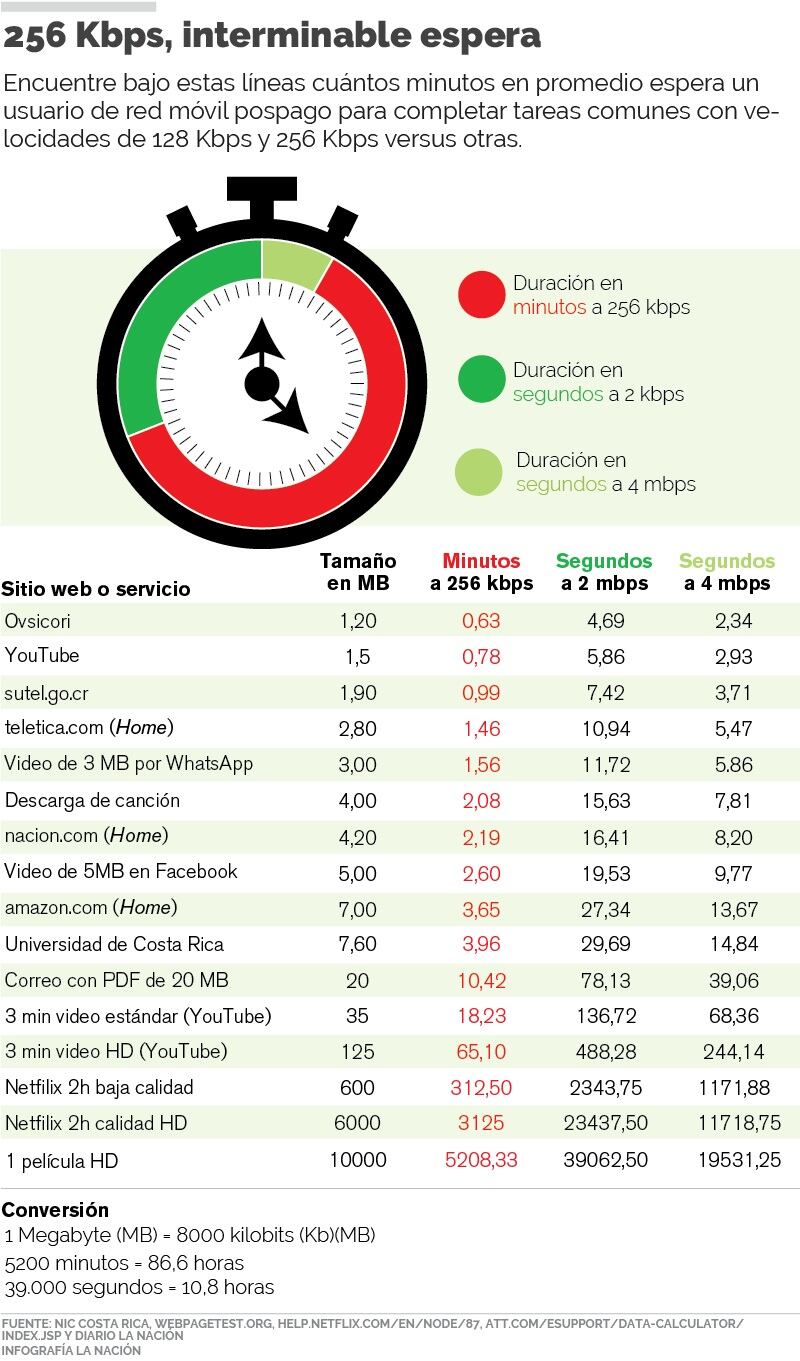 En su escrito, la defensora recuerda un análisis técnico que elaboró este diario y NIC Costa Rica –ente responsable de los dominios .cr y miembro de la Academia Nacional de Ciencias– en el que se descubrió que esos 256 Kbps de "velocidad funcional" afectan la rutina de los usuarios en telefonía pospago.