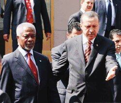 La reunión entre Annan y Erdogan se celebró mientras cerca de 300 pacifistas intentaban protestar contra el despliegue de soldados turcos en Líbano.
