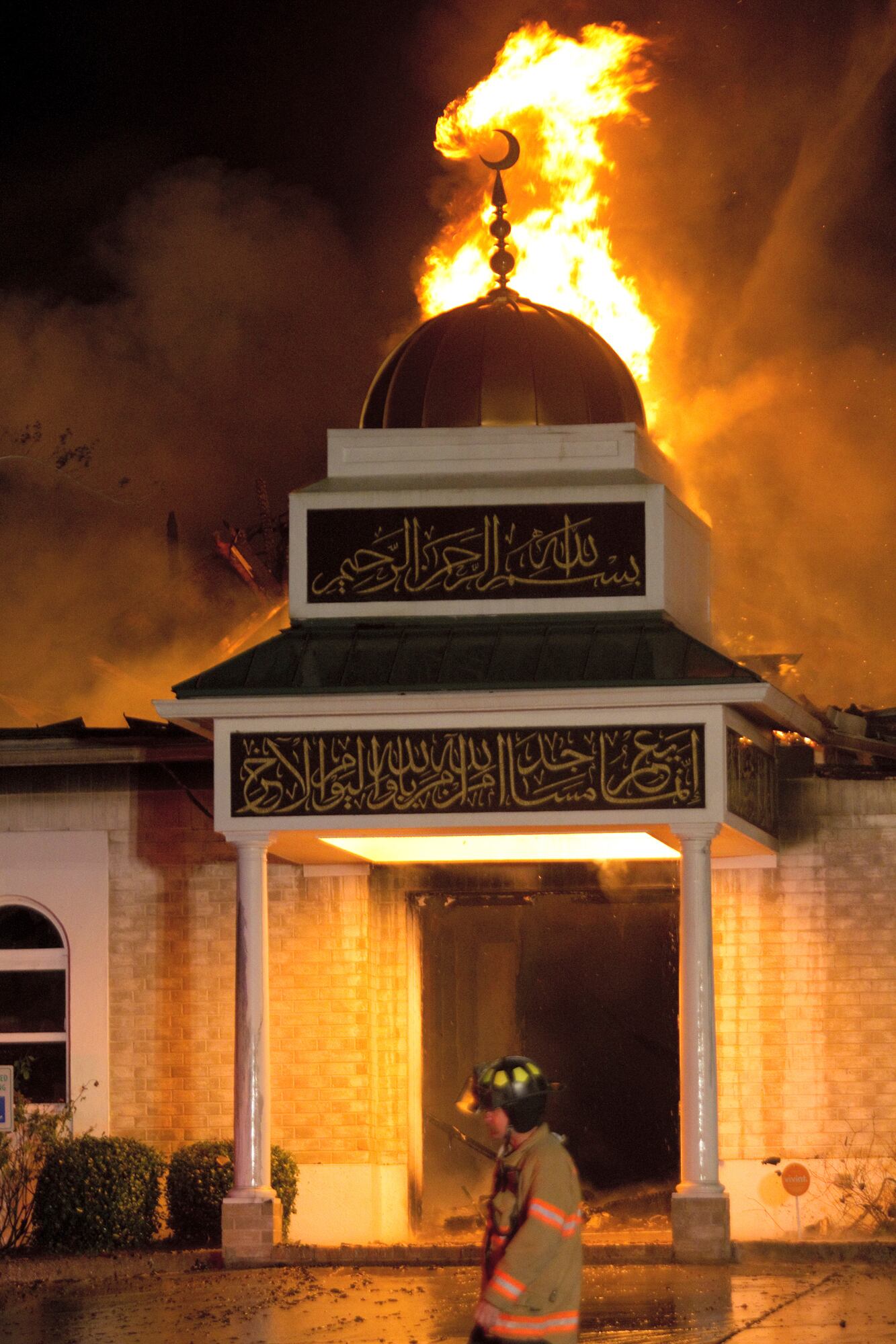 "El imán estaba preocupado y condujo hasta el lugar ", declaró Hashmi." Para entonces, los camiones de bomberos lanzaban agua contra las llamas". La estructura fue construida en el 2000.