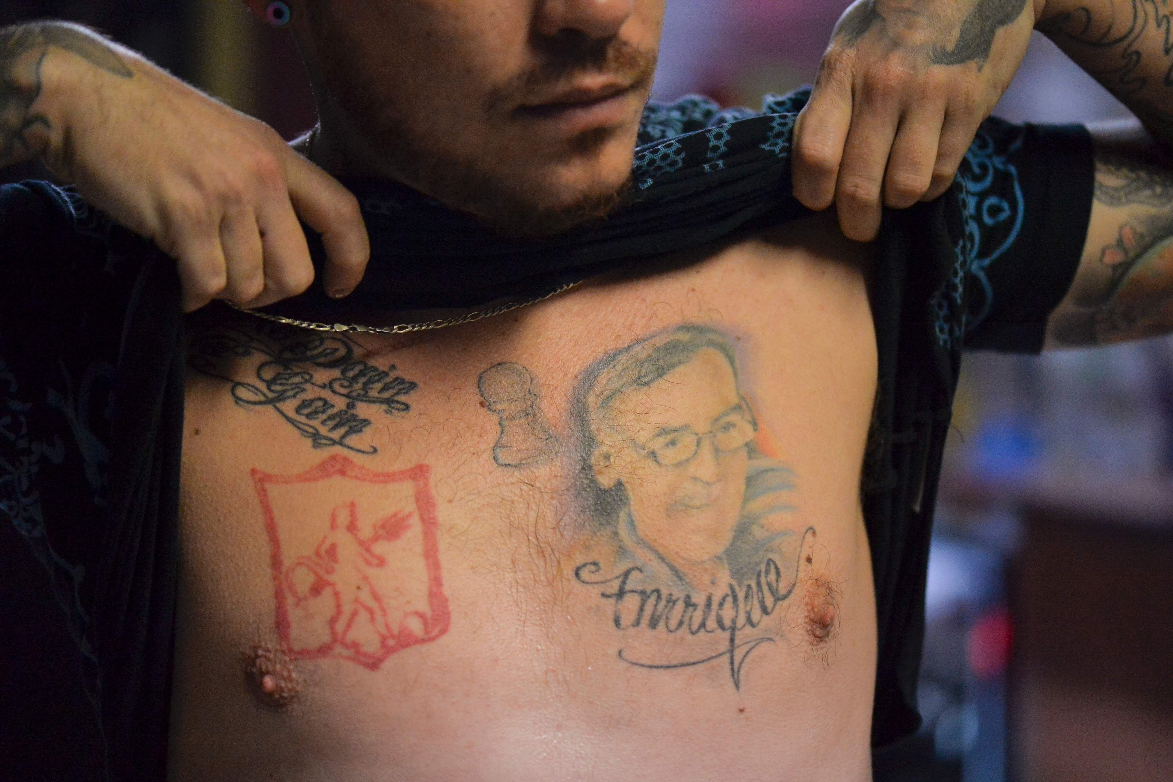 Residenciado en Cali, donde regenta una tienda de tatuajes, Juan José tiene el rostro de Ismael Enrique grabado en el pecho: con gafas y entrado en años, se ve afable en esa imagen.