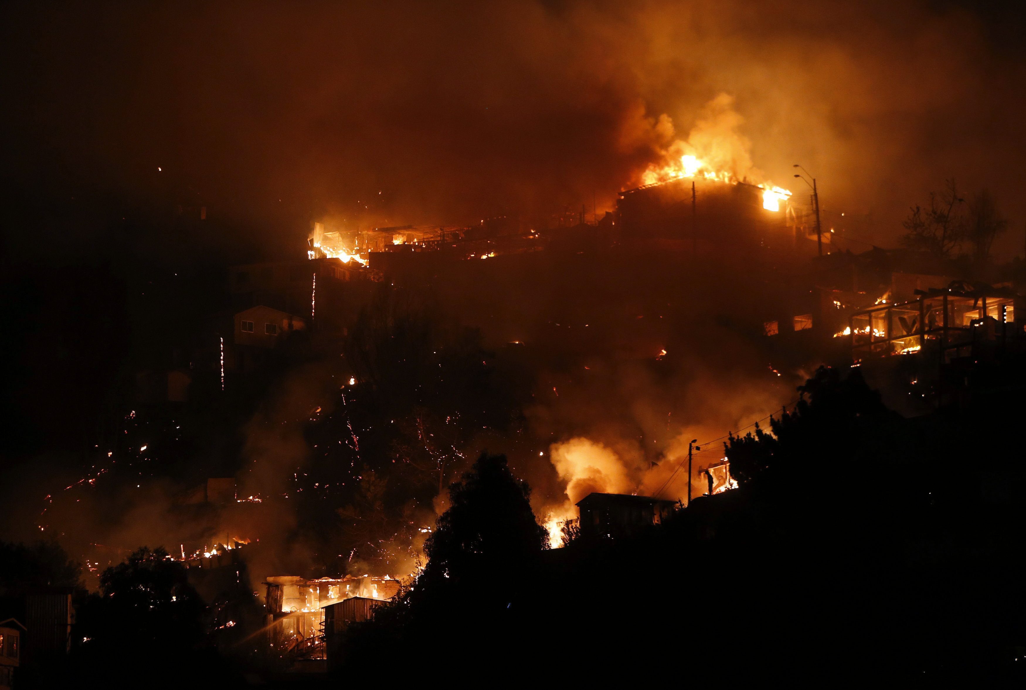 Unos 1.300 bomberos y brigadas aéreas y terrestres de la Corporación Nacional Forestal (Conaf) siguen trabajando para apagar las llamas en algunos puntos de los cerros de la ciudad portuaria, situada a 120 kilómetros al oeste de Santiago.