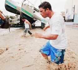 Algunas bandas de lluvias fuertes y constantes inundaron calles y algunos canales secos, pero el ojo del huracán aún estaba a 95 kilómetros de distancia la tarde de ayer.
