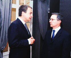 El mandatario español afirmó que el tema de la seguridad y otros de naturaleza comercial y cultural forman parte de la agenda abordaba con Uribe.