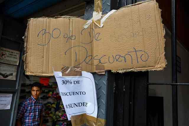 El pasado sábado fue el turno de la zapatería de Juan, en el centro histórico, donde la mayoría de tiendas ofrecen remates obligados del 30% con el sello del gobierno, a veces escrito a mano: "Oferta Sundde" o "Descuento del 30% Sundde".