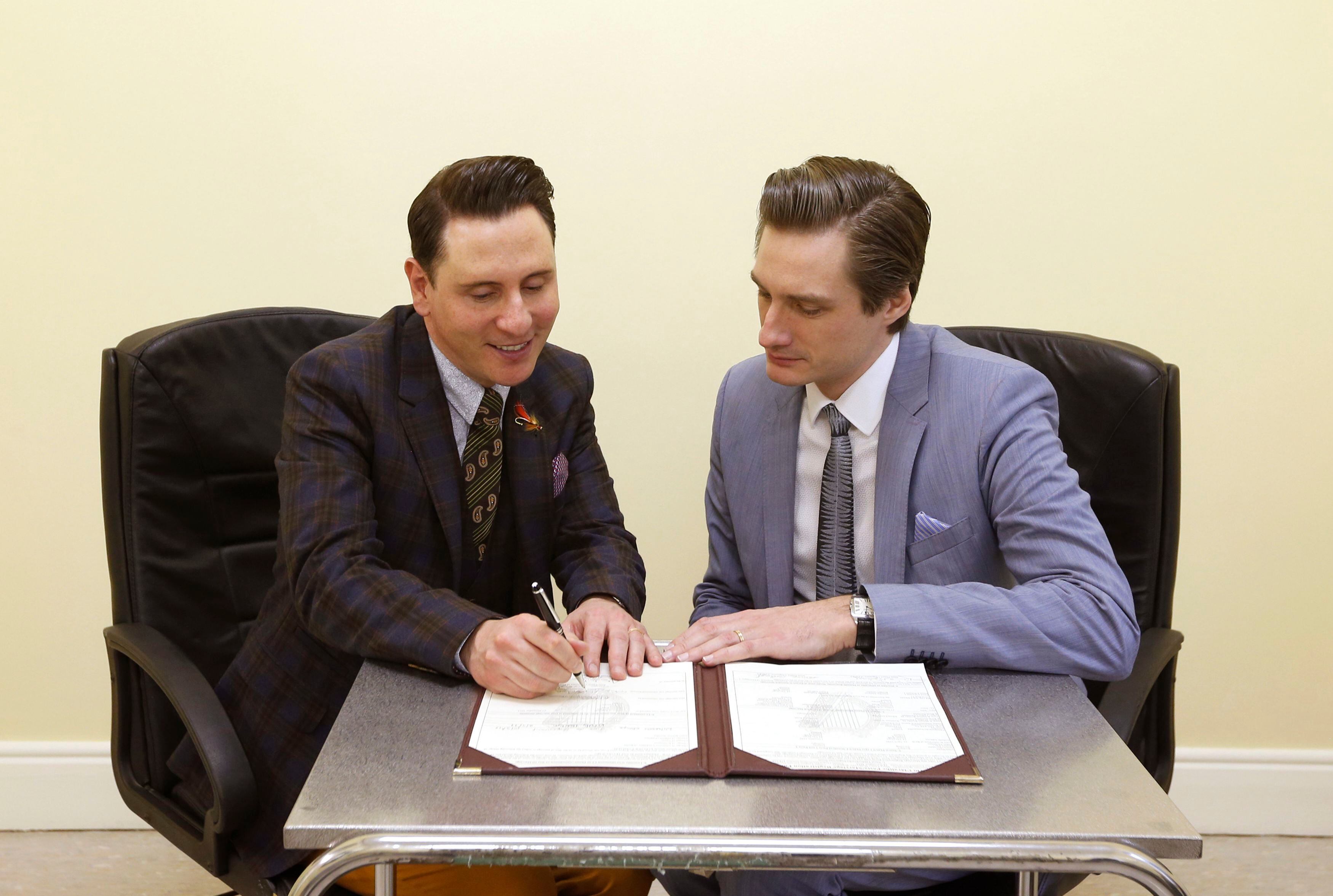 La primera pareja en firmar fue la formada por el abogado Cormac Gollogly y el funcionario bancario Richard Dowling, ambos de 35 años.