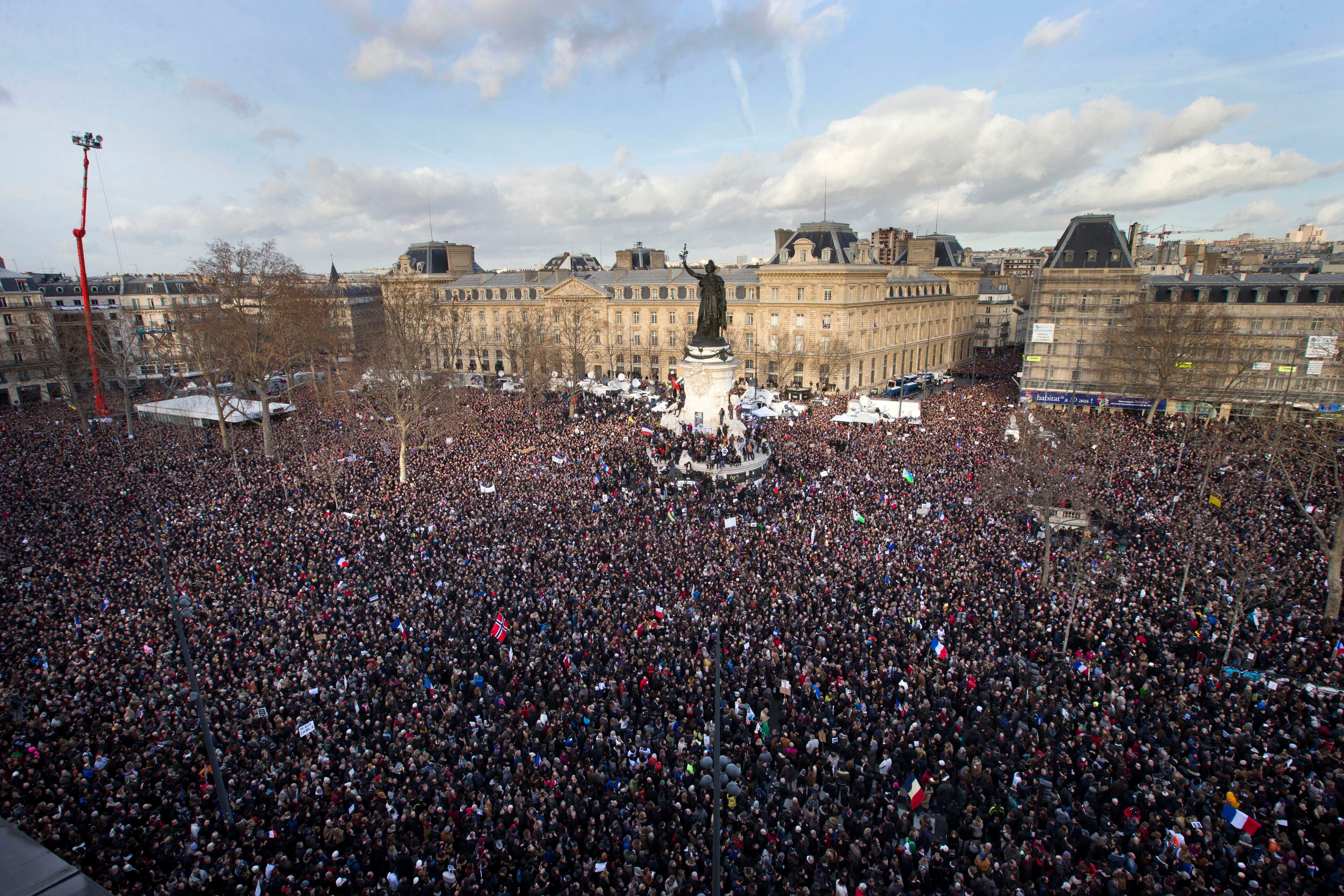 Desde el sábado, unas 700.000 personas comenzaron a manifestarse espontáneamente en las calles de Francia para rendir homenaje a las 17 víctimas de los ataques.