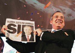 Calderón obtuvo un 35,89% de la votación total, mientras que López Obrador quedó con el 35,33%.