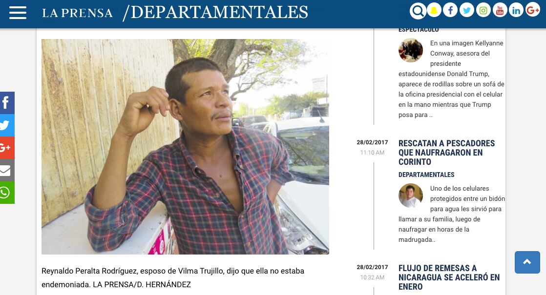 La víctima, identificada como Vilma Trujillo y madre de dos hijos, murió en el hospital Lenín Fonseca de la capital, donde pasó varios días grave de salud, afirmó la vicepresidenta y portavoz del gobierno, Rosario Murillo.