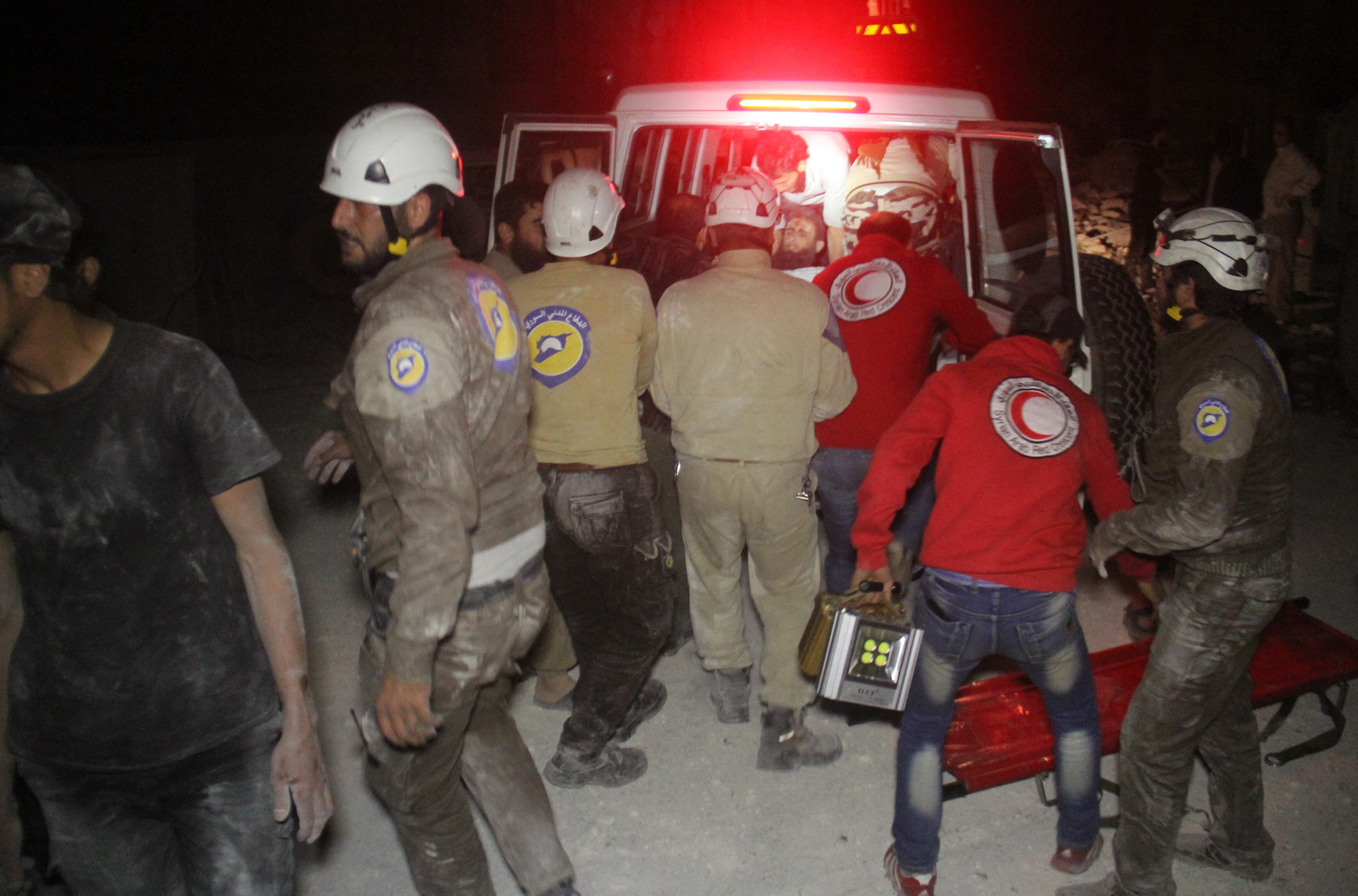Los miembros de la Cruz Roja asisten a uno de los heridos que dejó el bombardeo turco en Siria. (OMAR HAJ KADOUR)