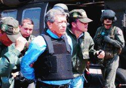 Foto del 11 de marzo del 2005 cuando miembros de la policía judicial colombiana trasladan a Miguel Rodriguez Orejuela antes de ser extraditado a Estados Unidos, donde ayer se declaró culpable de narcotráfico. | EFE