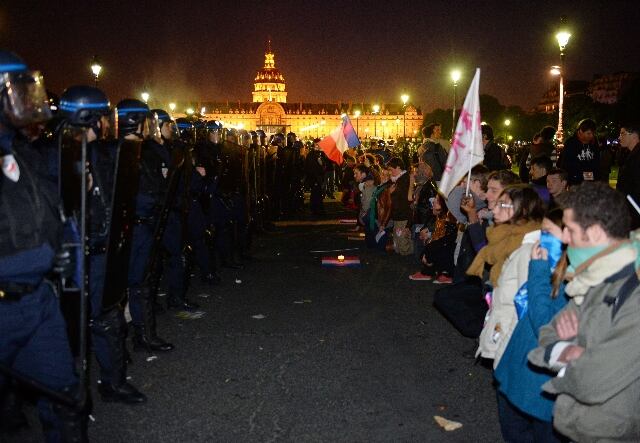 Los manifestantes lanzaron todo tipo de objetos, desde barreras de seguridad hasta botellas de cerveza, contra los policías, que utilizó abundantes gases lacrimógenos en las escaramuzas en los alrededores de la explanada de los Inválidos, en París.