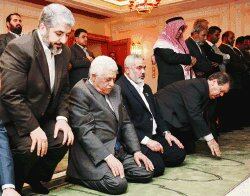 La firma fue realizada en el Palacio de los Invitados de La Meca, en una ceremonia presidida por el rey Abdalá de Arabia Saudí y en la que también estuvo presente el primer ministro palestino y miembro de Hamás, Ismael Haniyé.