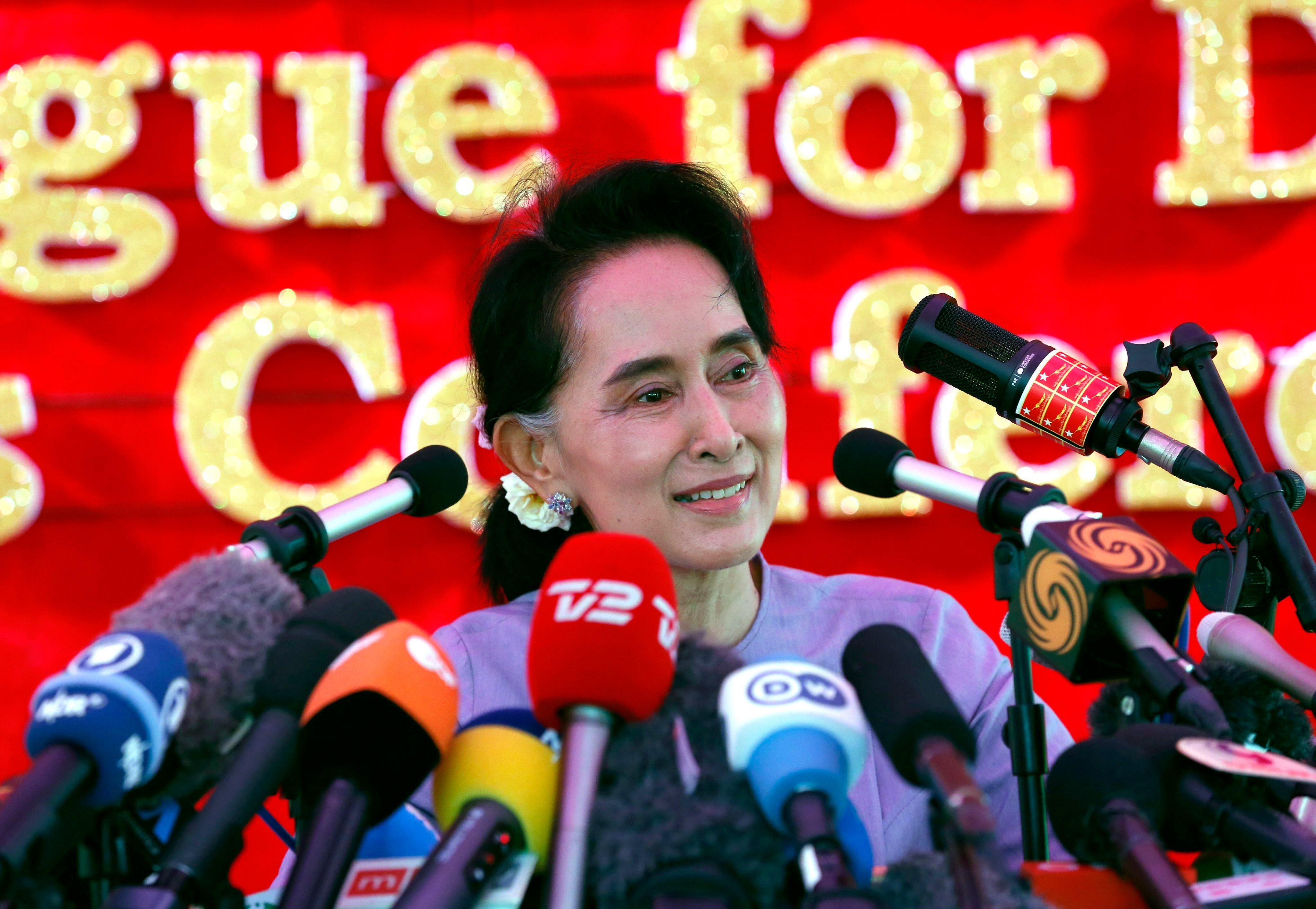 La líder opositora recibió a la prensa en su hogar, donde pasó 15 años en detención domiciliaria por orden de la junta militar que gobernó el país hasta 2011.