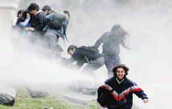 Cuando la mayoría de los manifestantes se dispersó pacíficamente, pequeños grupos de estudiantes lanzaron limones a la policía, que contestó con el uso de sus carros lanzaagua.