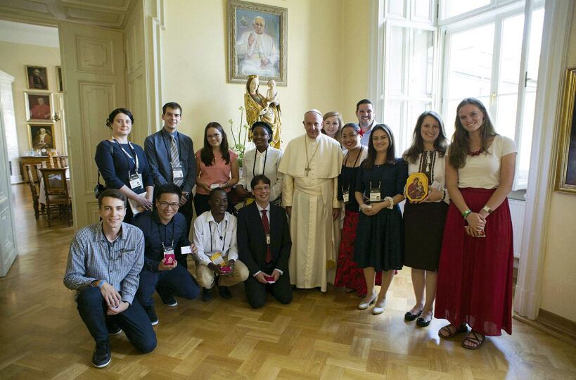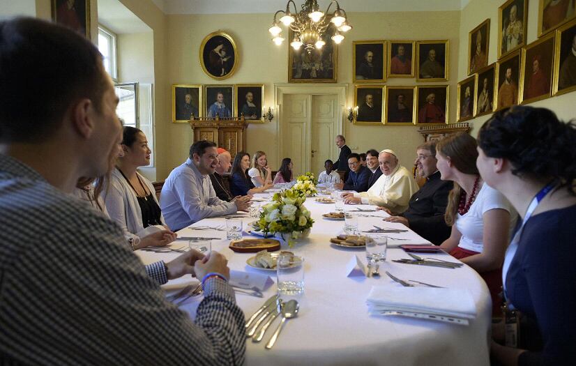 La organización de la JMJ eligió por sorteo entre los llamados "voluntarios a largo plazo", los que han ayudado a los jóvenes llegados de todo el mundo, a representantes por cada continente y de Polonia y una chica traductora para que almorzaran en el arzobispado con Francisco, en una de las citas habituales en las últimas JMJ.
