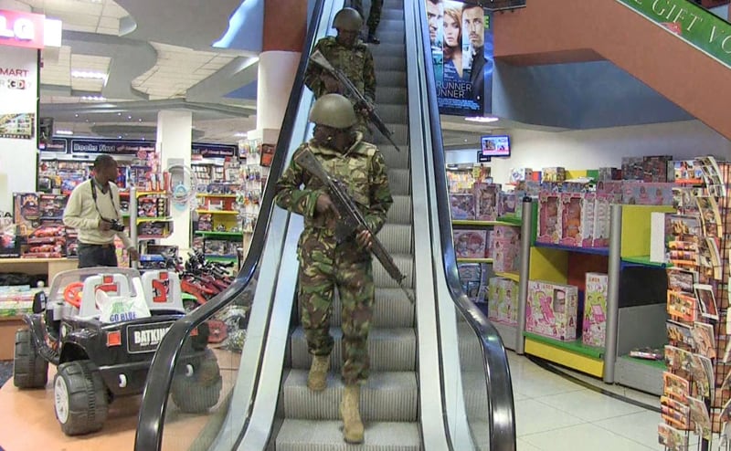 El ejército keniano ya ha entrado al centro comercial de cuatro pisos y se han producido tiroteos esporádicos. Se vieron a varios soldados llevando al menos dos cohetes lanzagranadas. Helicópteros militares sobrevolaban el lugar.
