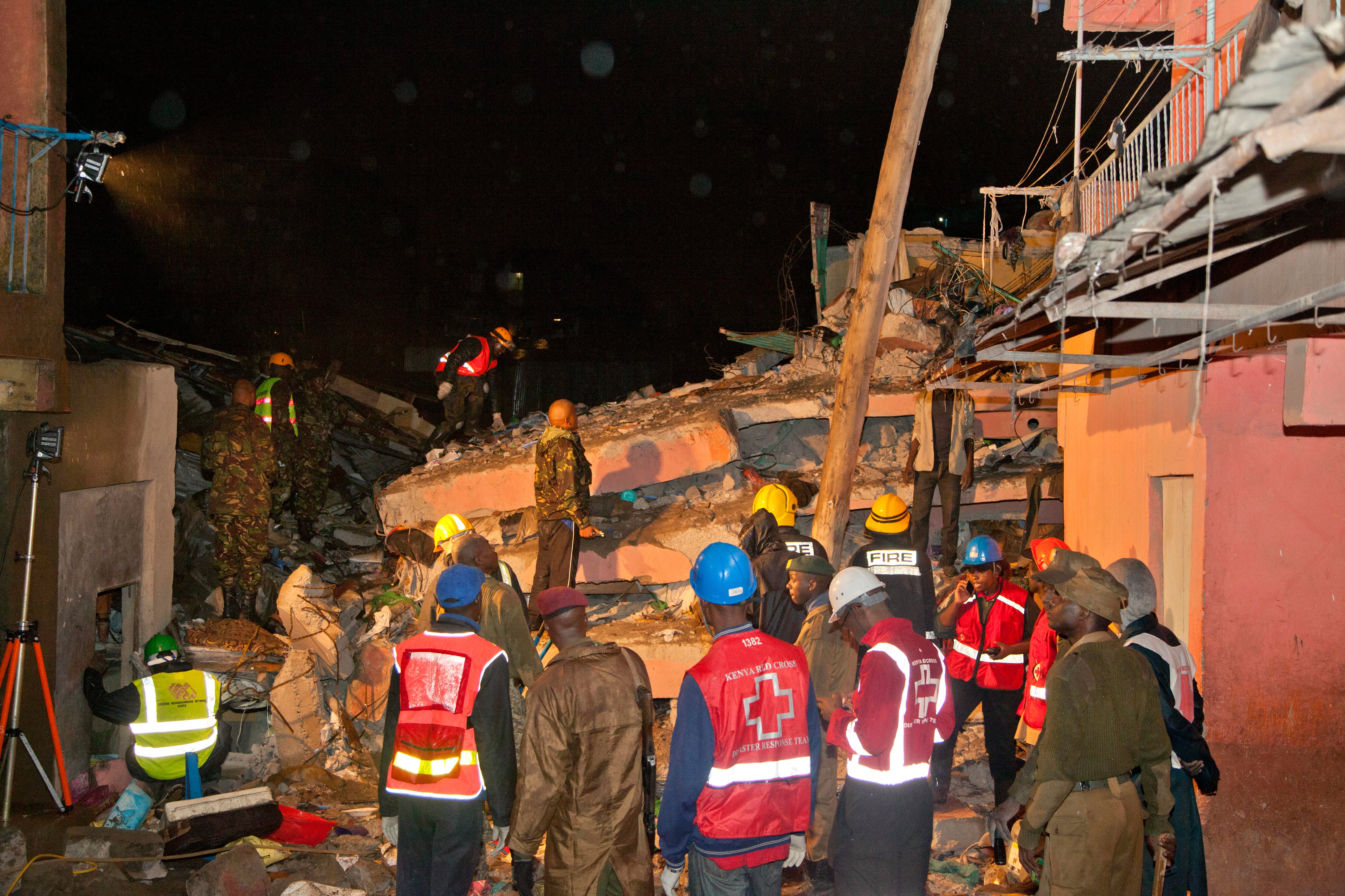 "Un edificio de seis pisos se desplomó en Nairobi como consecuencia de inundaciones. Nuestros equipos se encuentran en el lugar y reina un caos total", declaró Arnolda Shiundu, vocera de la Cruz Roja keniana.