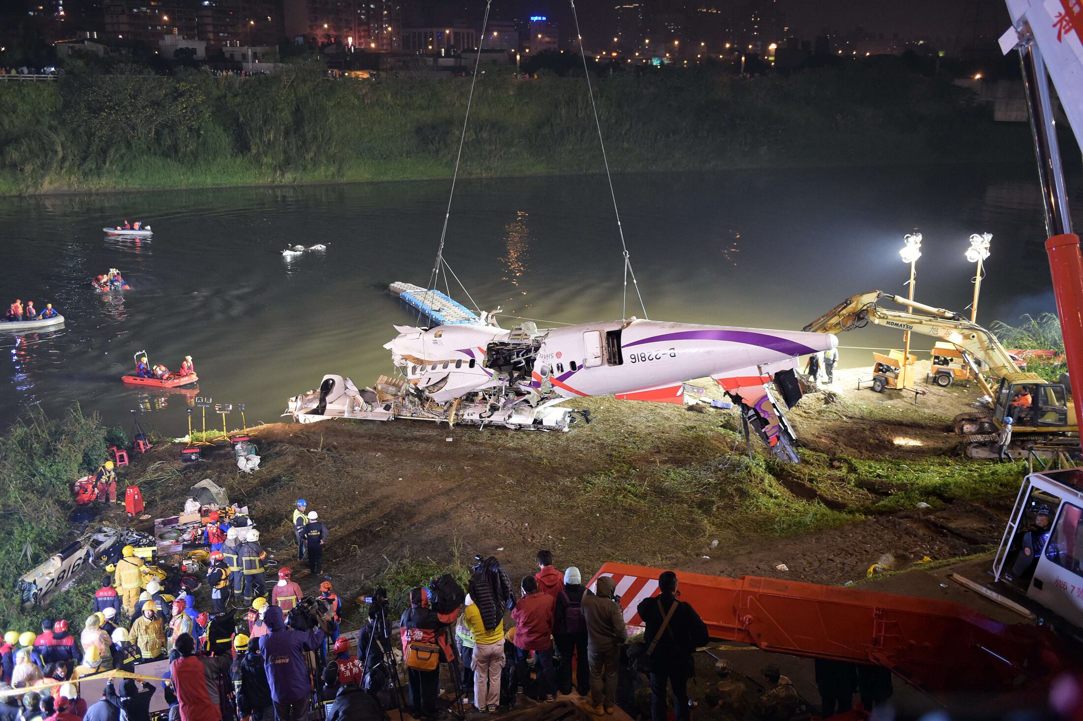 Wu Jun-hong, funcionario del Departamento de Bomberos, que coordinó el rescate, dijo que los desaparecidos estaban aún atrapados en el fuselaje o habían sido arrastrados por las aguas.
