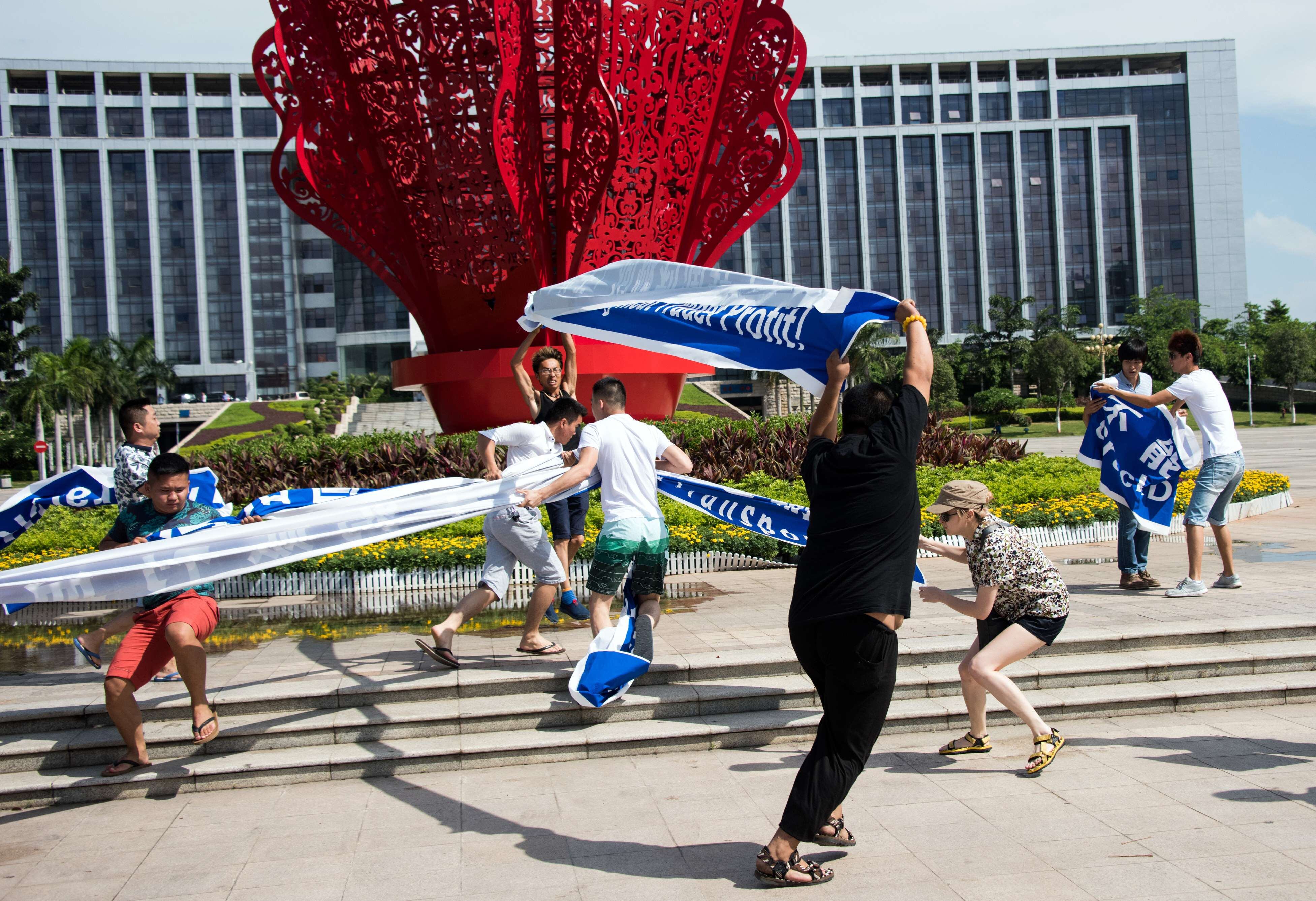Una decena de defensores de los animales agitaban pancartas delante de los edificios de las autoridades locales de Yulin, cuando llegó una veintena de hombres que les obligó a salir corriendo.