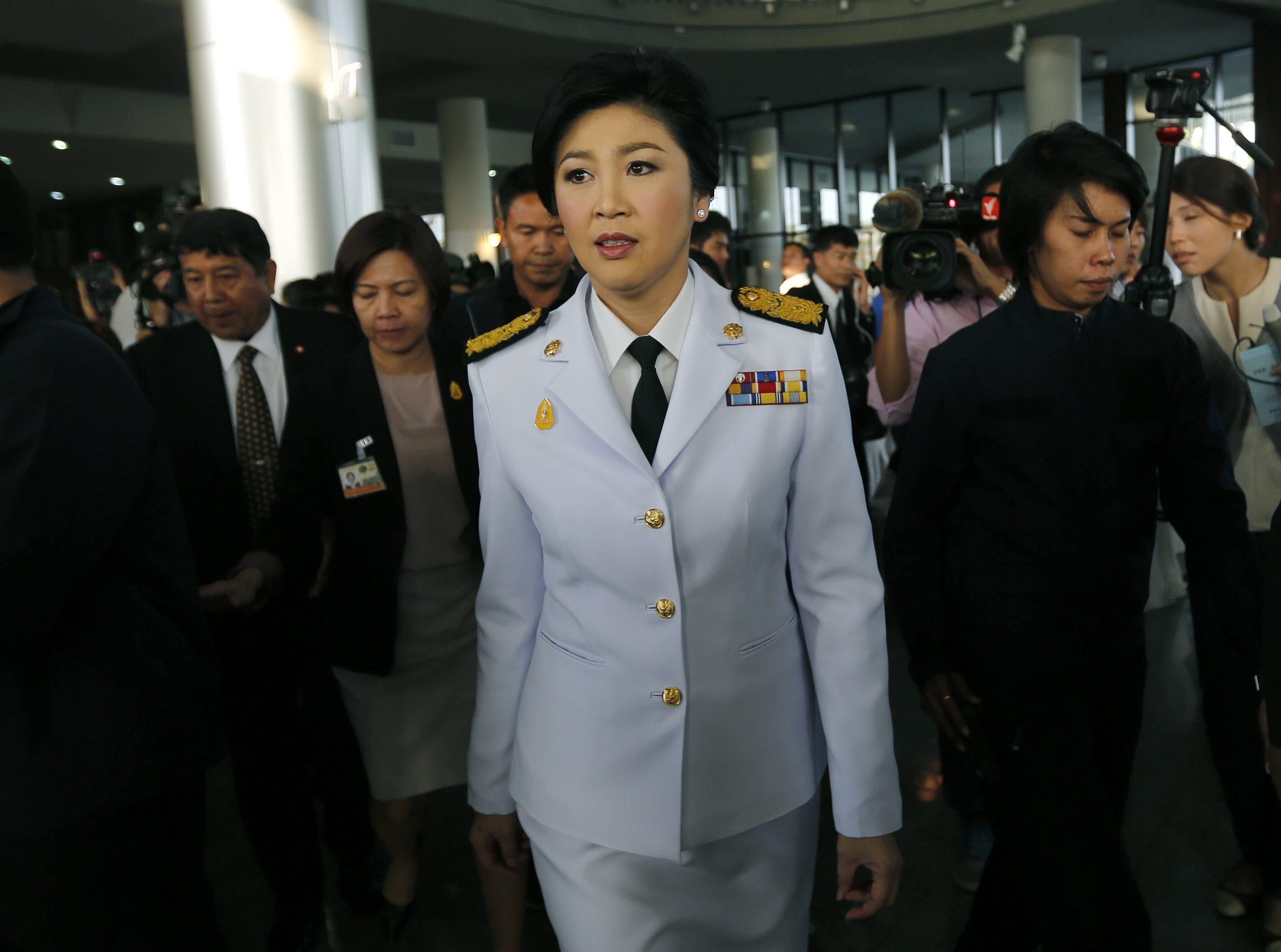 Varios centenares de manifestantes se concentraron el martes en las afueras de la reunión de Yingluck con la Comisión Electoral.