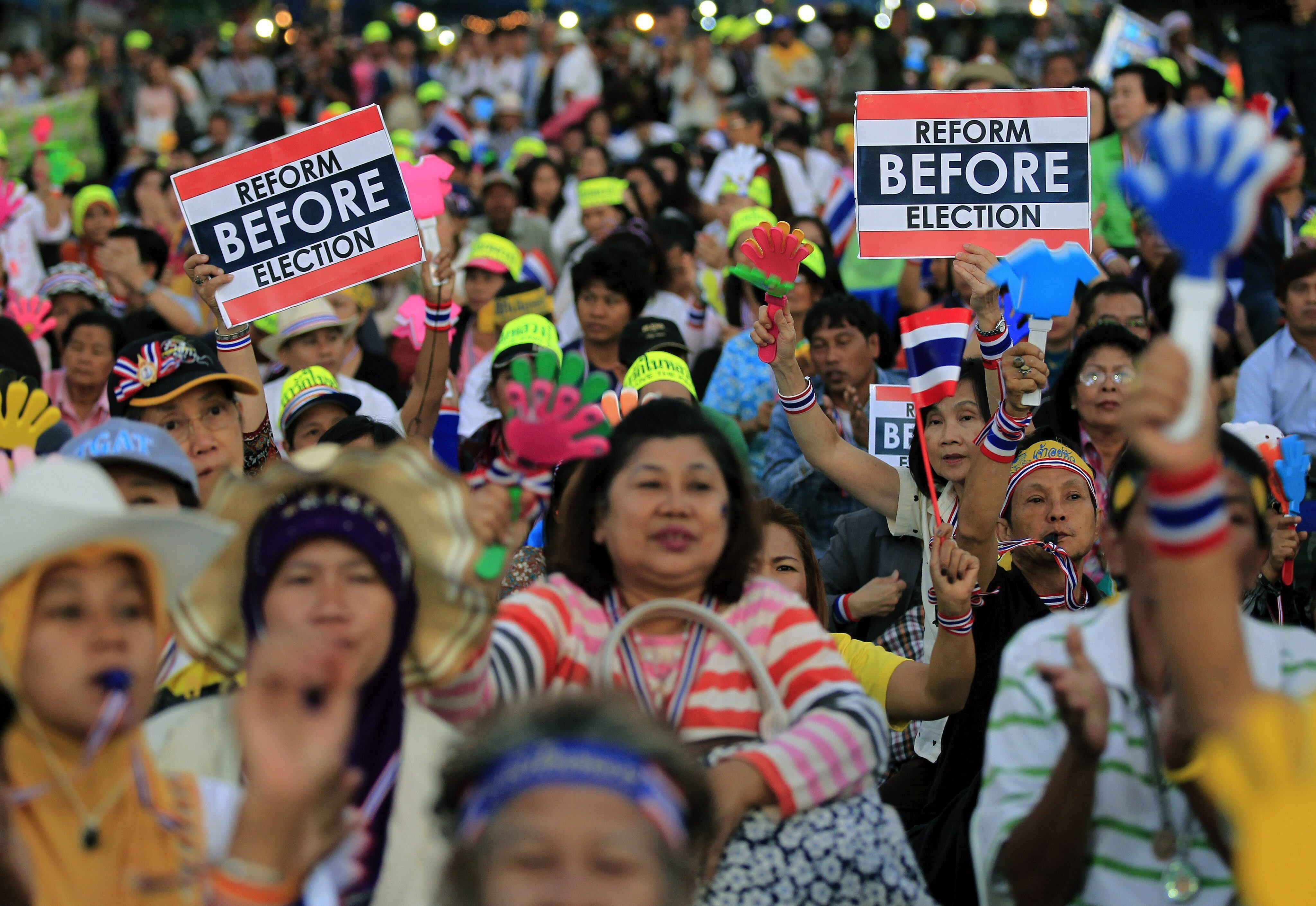 Los antigubernamentales exigen la formación de un "consejo popular" no electo que reforme el sistema político antes de que se celebren elecciones para acabar con la corrupción y erradicar lo que califican como "régimen de Thaksin".
