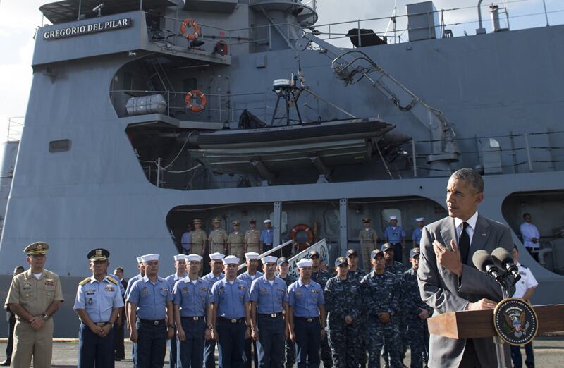 “Mi visita a este lugar subraya nuestro compromiso con la seguridad de las aguas de esta región y la libertad de navegación”, dijo Obama desde un buque de la Marina filipina, atracado en la bahía de Manila.