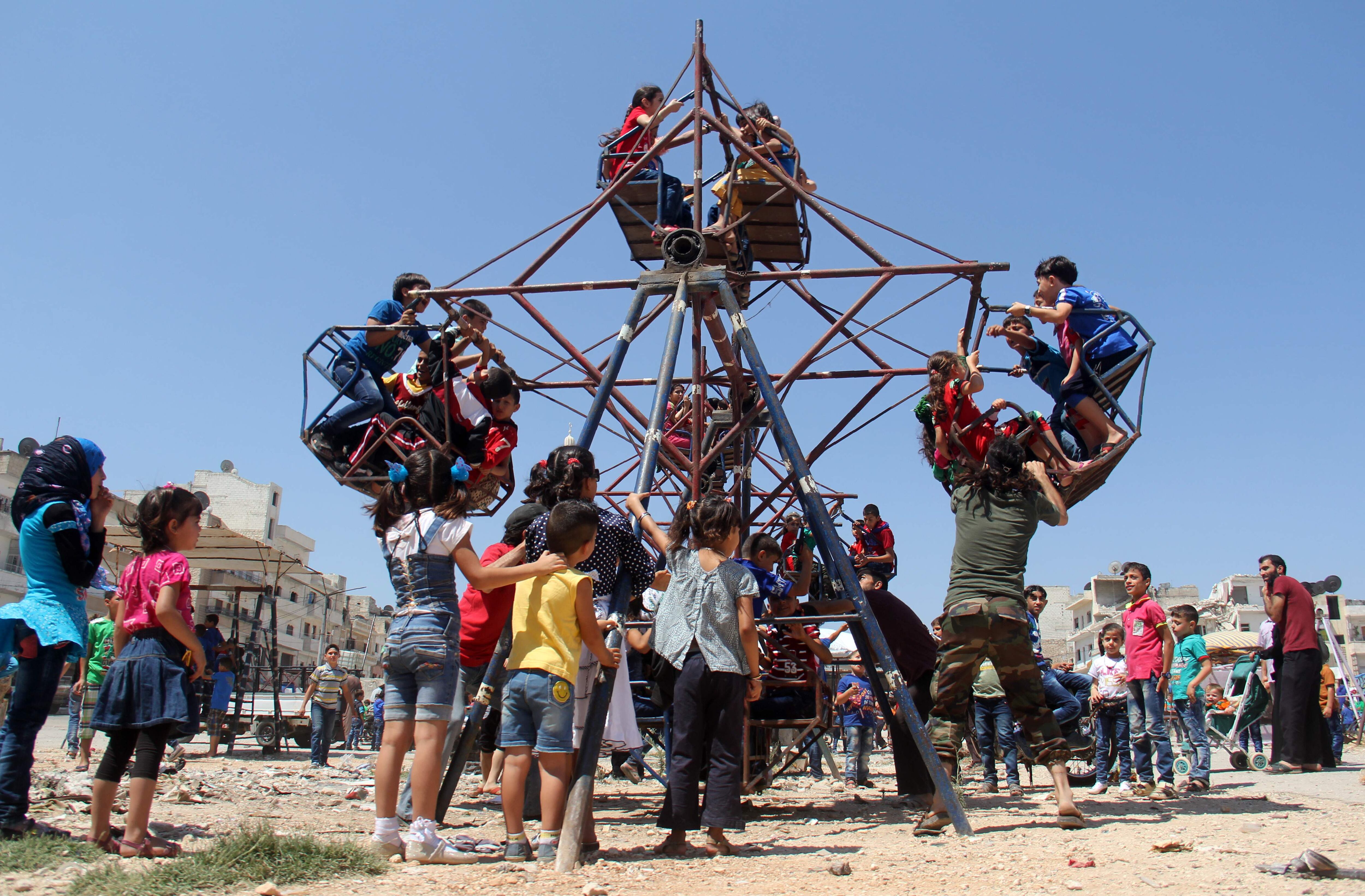 En Alepo, una de las ciudades más afectadas por la guerra, los niños no dejan pasar la ocasión para jugar. "Queremos divertirnos durante el Aid, no quedarnos en casa y tener miedo", dice Jaled al-Ahmed, de unos 12 años.