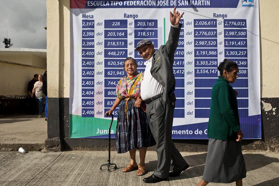 En el poblado indígena San Juan Sacatepequez, en el oeste de Guatemala, pobladores de origen maya con trajes coloridos desafiaron el frío de las montañas para llegar al centro de votación.