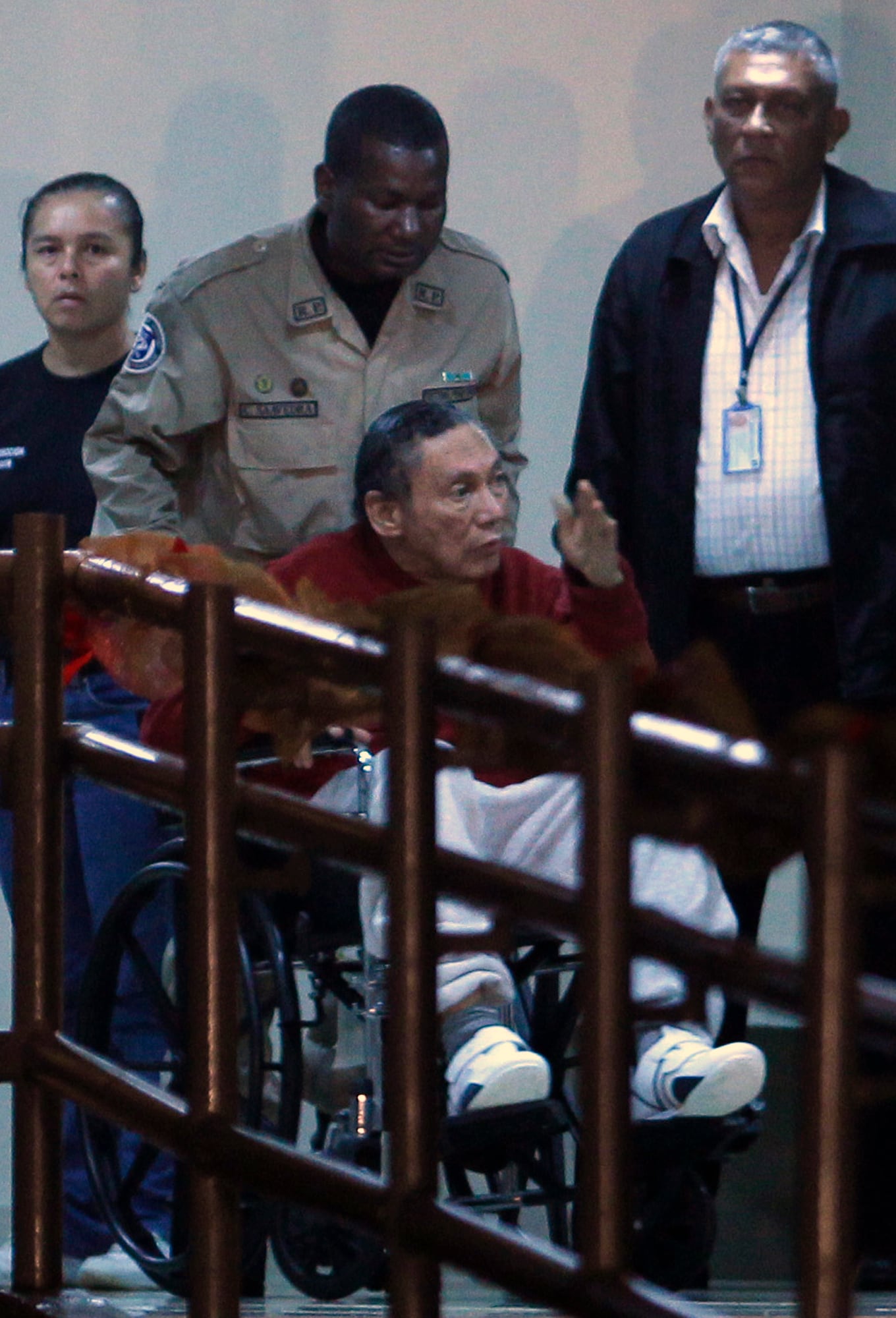 El exdictador panameño, Manuel Noriega, fue trasladado en junio del 2015 en una silla de ruedas por oficiales de la Policía dentro de la prisión El Renacer, en las afueras de la Ciudad de Panamá. (AP)