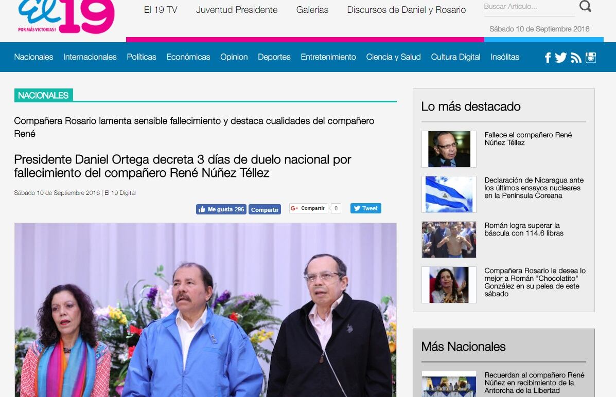 Núñez, de 69 años e ingeniero de profesión, era un político muy querido por el sandinismo y valorado por sectores de la oposición debido a su accionar moderado y conciliador.
