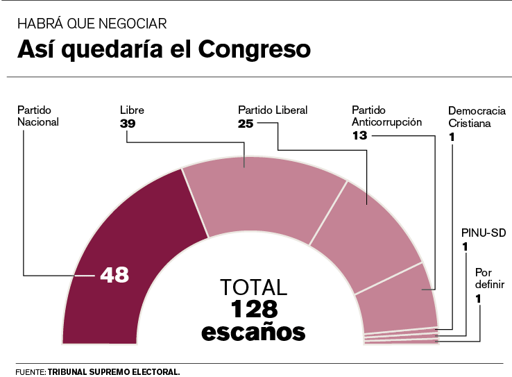Honduras. ACAN-EFE y AFP. El Partido Libertad y Refundación (Libre), cuya candidata presidencial fue Xiomara Castro, se convirtió en la primera fuerza de oposición en el Congreso de Honduras, mientras ella sigue reclamando la victoria en las elecciones del 24 de noviembre.