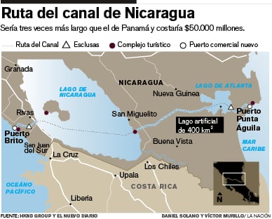 La empresa HK Nicaragua Development Investment (HKND), con sede en Hong Kong, obtuvo en junio del 2013 una concesión de 50 años, prorrogables por 50 más, para construir y operar un canal de 278 kilómetros de largo en Nicaragua.