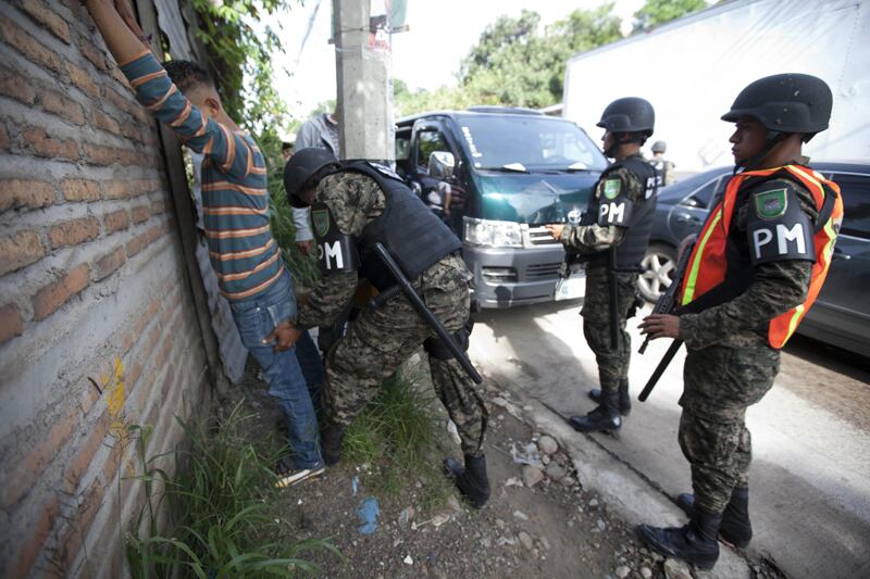 En Tegucigalpa, los policías militares, provistos de armas automáticas y su rostro cubierto, llegaron por sorpresa al barrio marginal Flor del Campo, donde según denuncias de vecinos operan pandilleros que los tienen atemorizados.