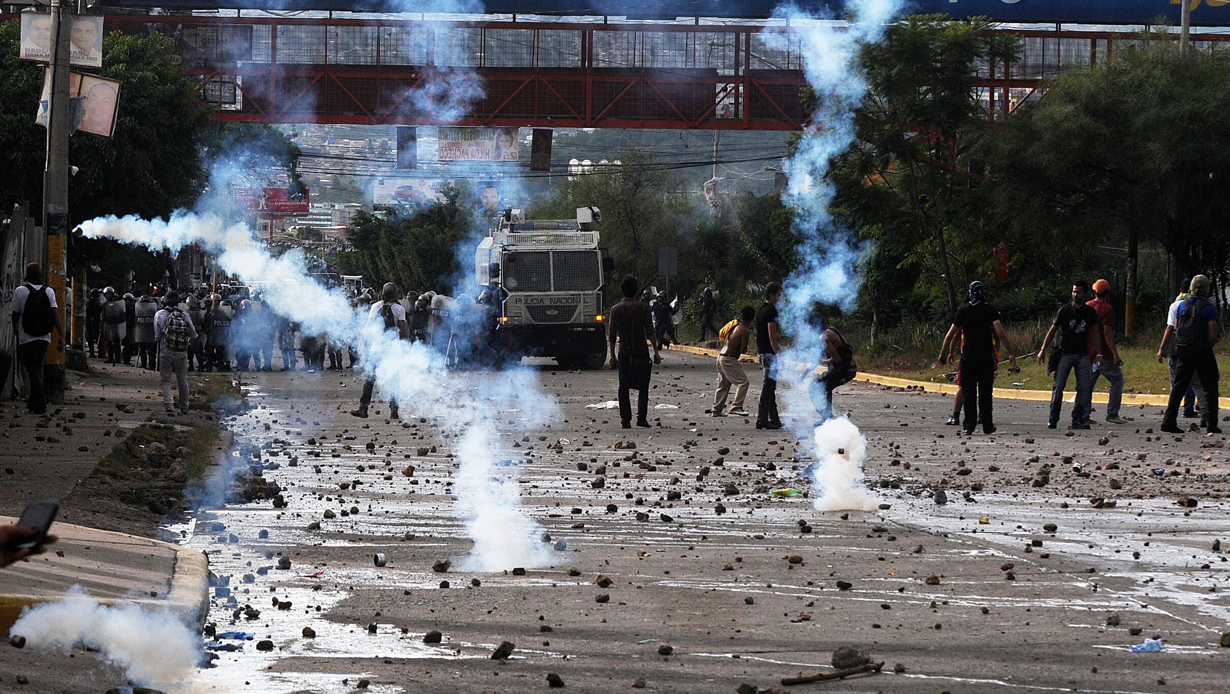 Un centenar de soldados de la recién creada Policía Militar reprimieron con bombas de gas lacrimógeno y bastonazos a unos 800 estudiantes que bloqueaban un bulevar del este de Tegucigalpa, frente a la Universidad Nacional.