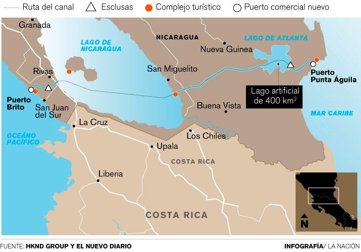 El canal en cuestión uniría los océanos Atlántico y Pacífico a través de una ruta de 278 kilómetros, de los cuales 105 atravesarían el Cocibolca, que con sus 8.624 kilómetros cuadrados es la primera reserva de agua dulce de Centroamérica.