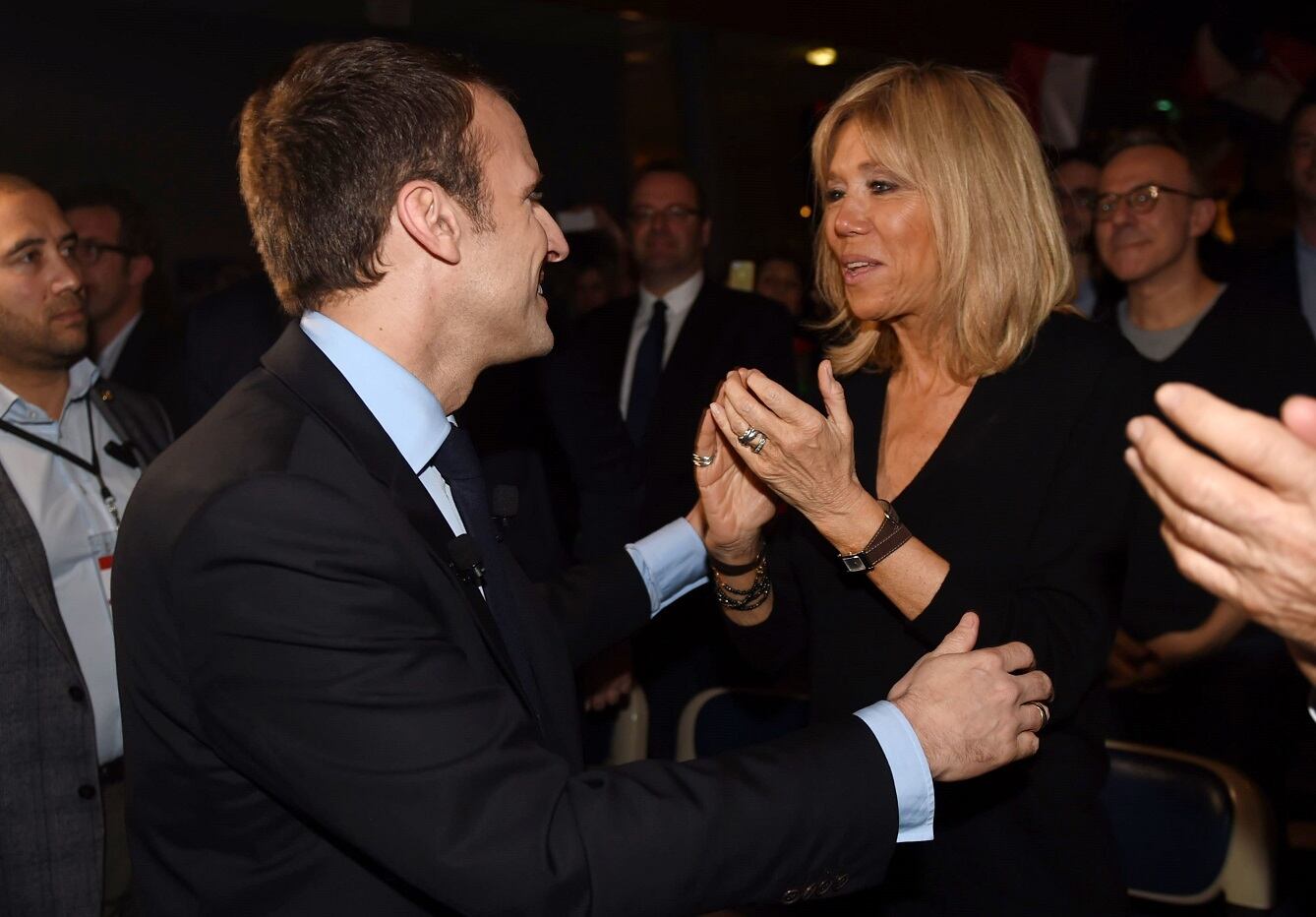 El candidato presidencial por el movimiento En Marcha, Emmanuel Macron, visitó el jueves la ciudad de Talence, en el suroeste de Francia, en compañía de su esposa, Brigitte Trogneux. (AFP)