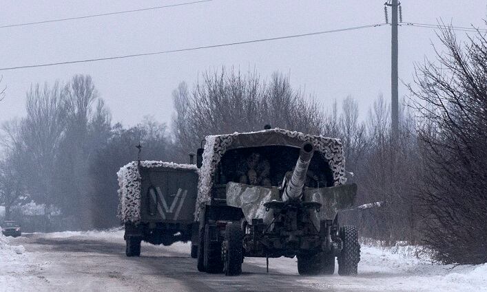 Un camión ucraniano transportaba el jueves una pieza de artillería por una carretera en las cercanías de la ciudad de Avdiivka, en el este del país. (AP)