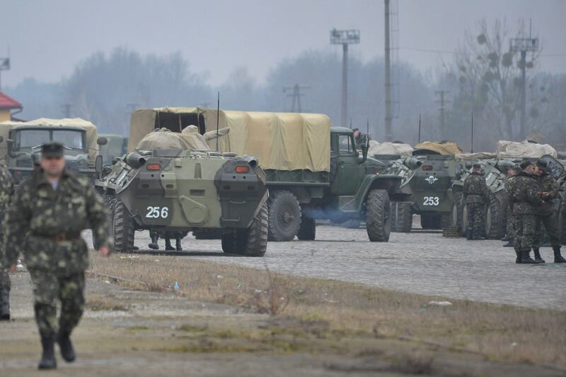 Los guardafronteras ucranianos aseguraron que los vehículos militares llegaron al puerto de Kerch a bordo de navíos de guerra de la Flota rusa del mar Negro, acuartelada en Sebastopol, en el otro extremo de Crimea.