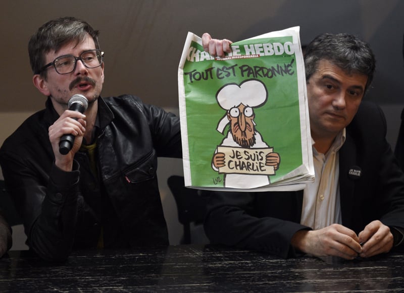 El caricaturista Luz muestra el número de Charlie Hebdo. | AFP (MARTIN BUREAU)