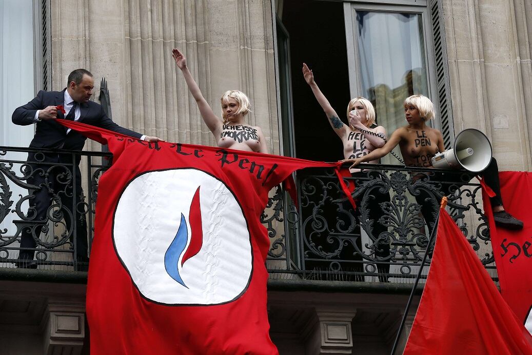 Más allá de la batalla cainita, la intervención de la presidenta del FN junto a los simpatizantes "frontistas" se vio notablemente perturbada por al organización feminista radical Femen en dos ocasiones.