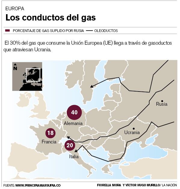 El 30% del gas que consume la Unión Europea le llega a través de los sistemas de gasoductos de Ucrania, que transportan el gas natural que la UE compra al gigante estatal ruso Gazprom.