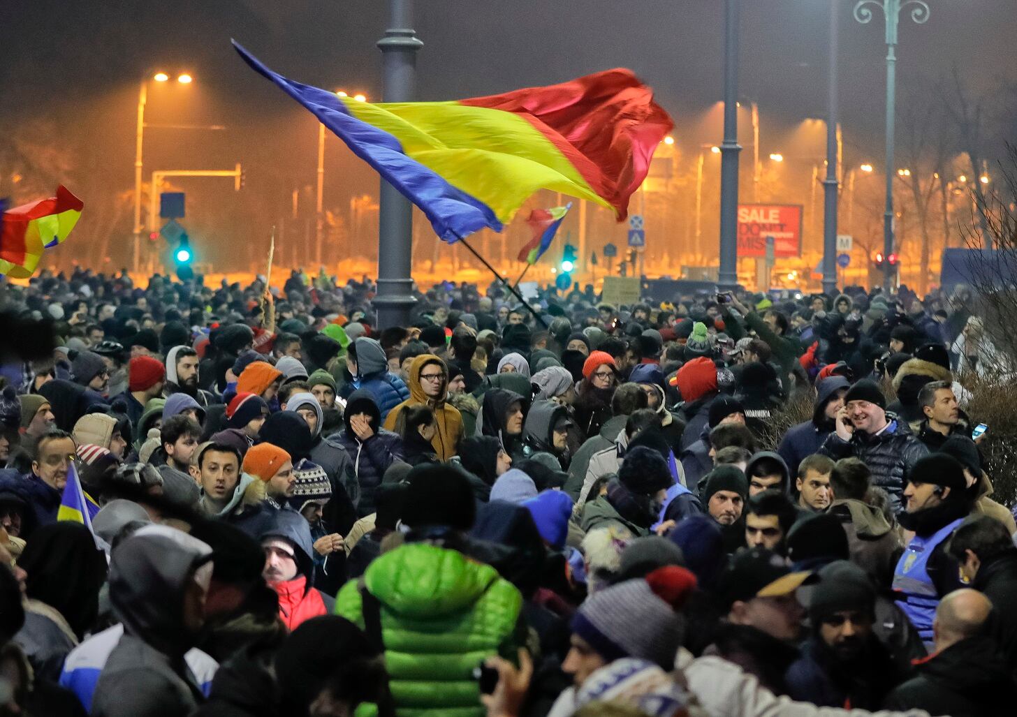 Millares de rumanos protestaron este miércoles en la madrugada (hora local) en Bucarest contra el decreto que cambia el código penal y evita el procesamiento de políticos por corrupción y otras causas. (AP)