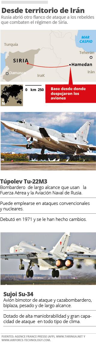 Bombarderos Tu-22M3 y Su-34 despegaron desde la base militar iraní de Hamedan