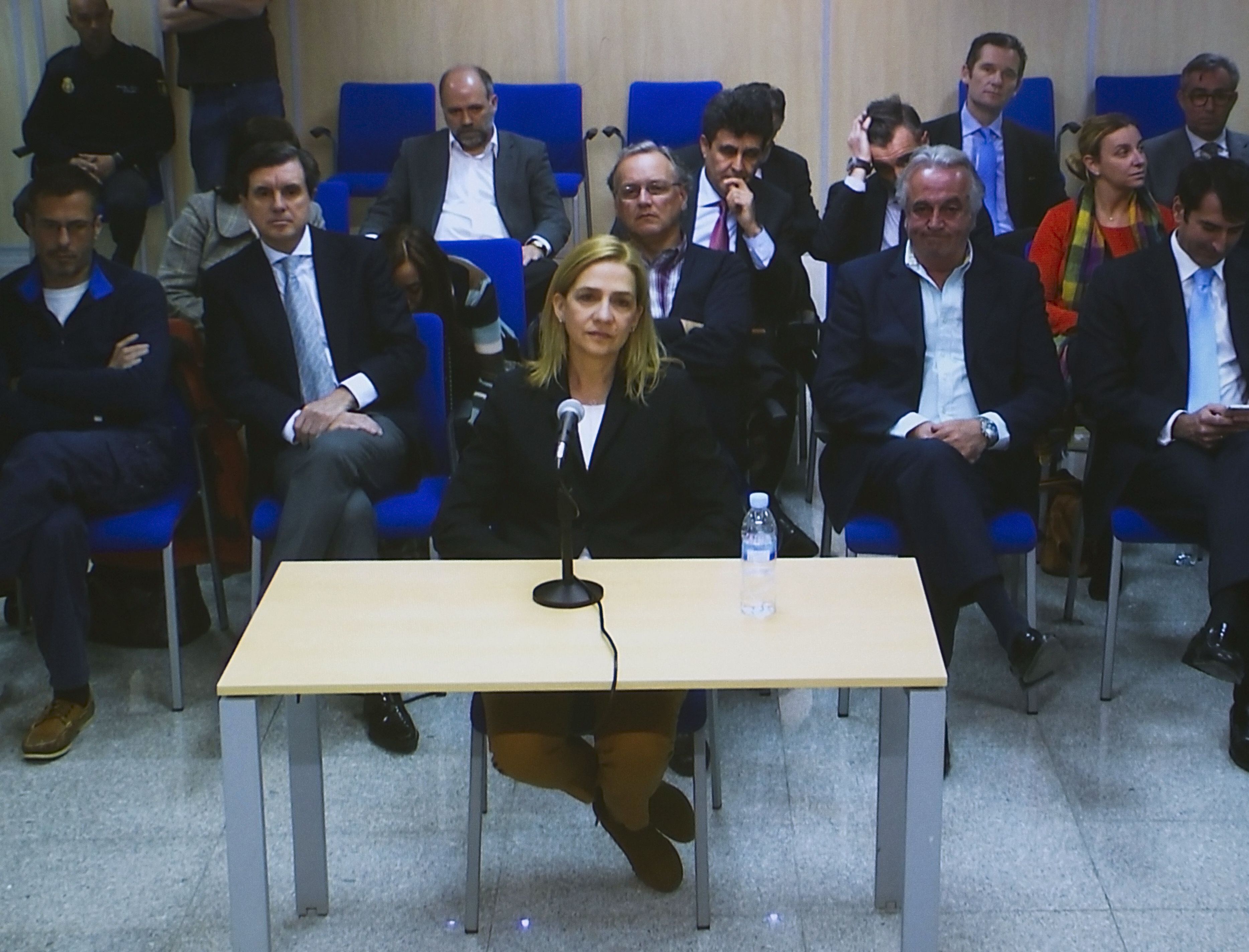 Hecho sin precendentes para un miembro de la familia del rey, la infanta se sienta en el banquillo en un caso de corrupción encabezado por su esposo Iñaki Urdangarin, que dañó gravemente la imagen de la monarquía española.