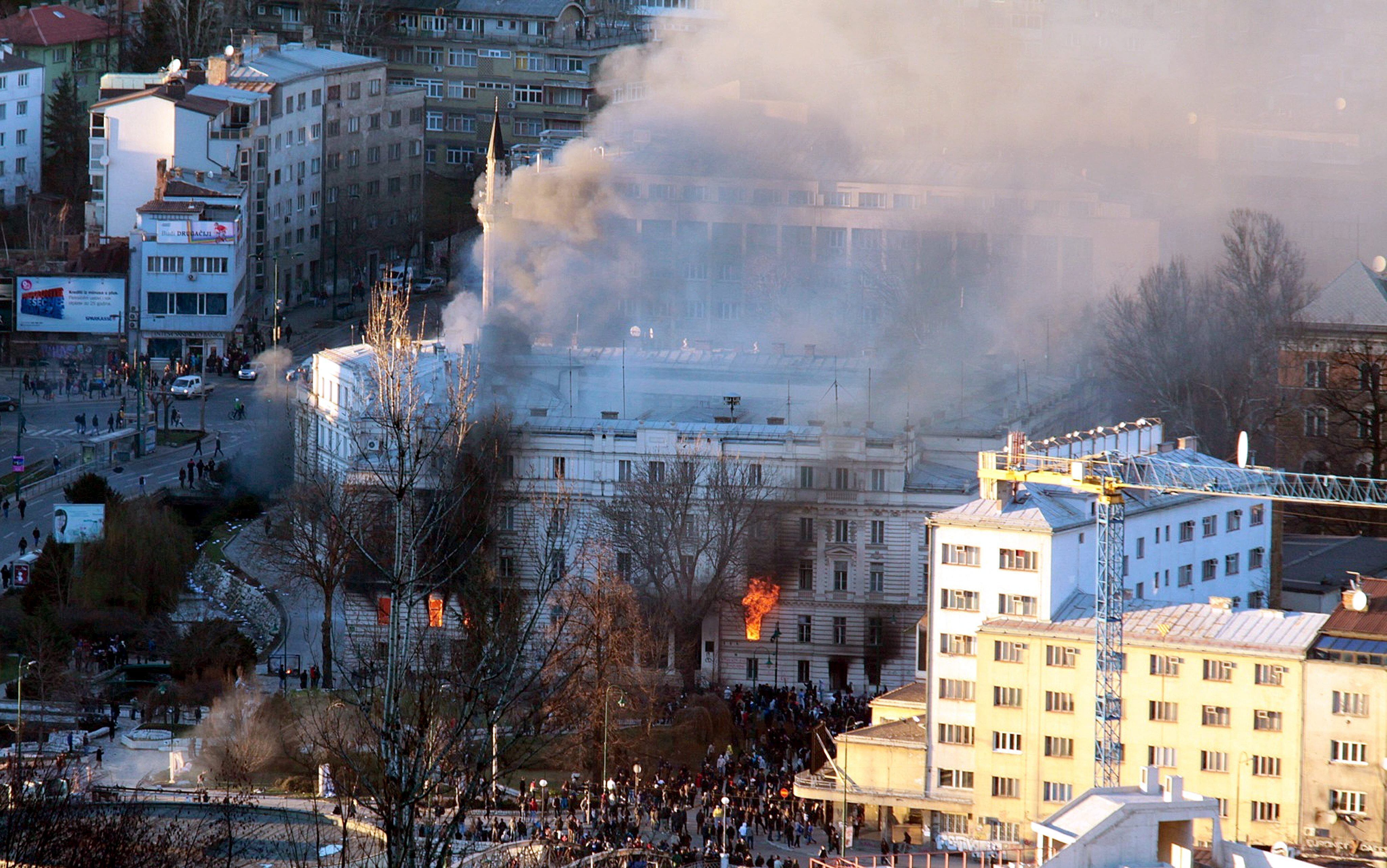 El edificio del Gobierno del cantón de Sarajevo fue nuevamente incendiado y el primer piso está en llamas, según Klix.ba.