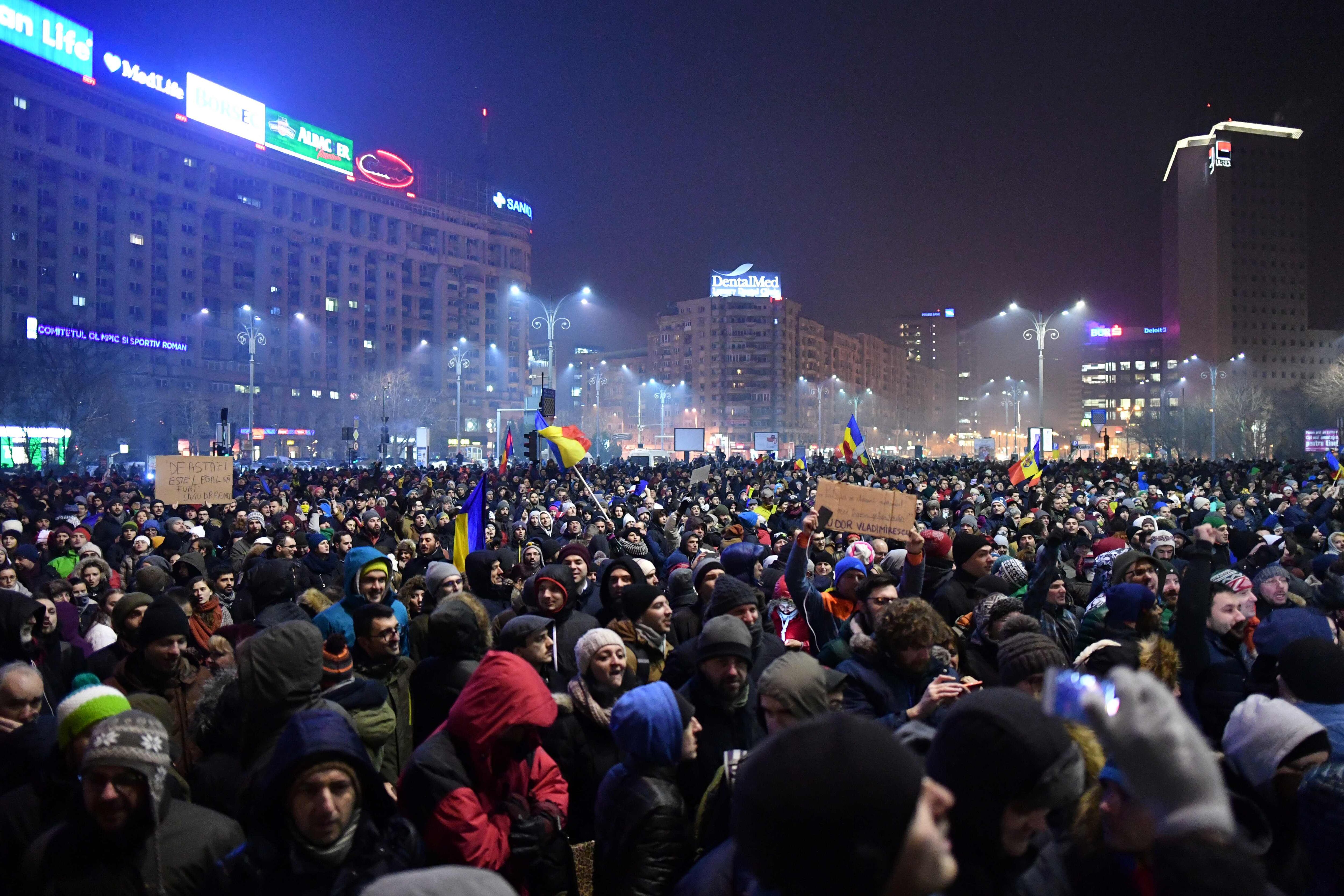 La adopción por sorpresa, a última hora del martes, de un decreto urgente que podría proteger a los políticos de algunas acciones judiciales hizo salir a la calle a miles de rumanos en plena noche.