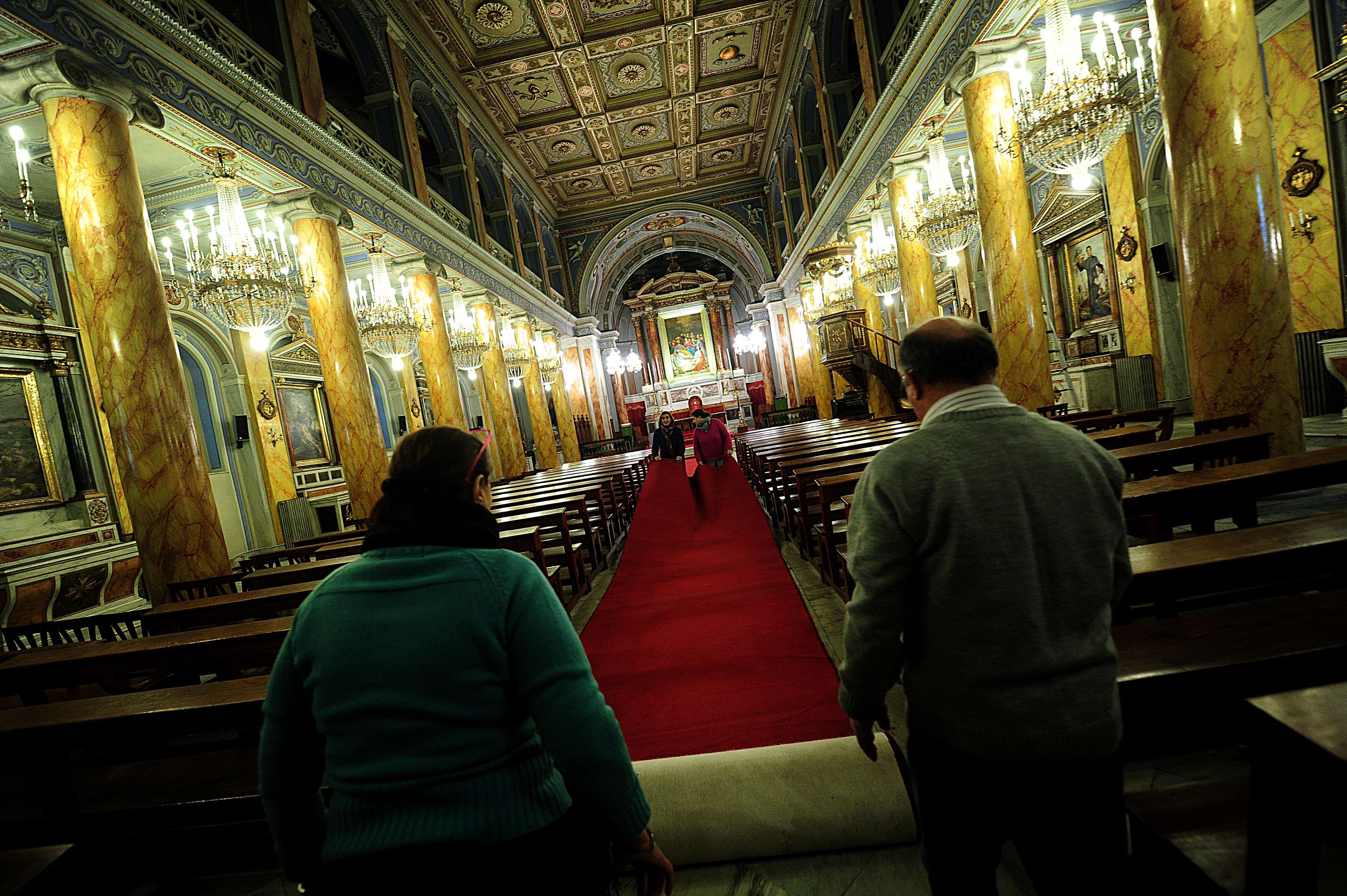 Feligreses preparan la Catedral del Espíritu Santo para la visita del papa Francisco a Estambul, que empieza este viernes. (AFP)